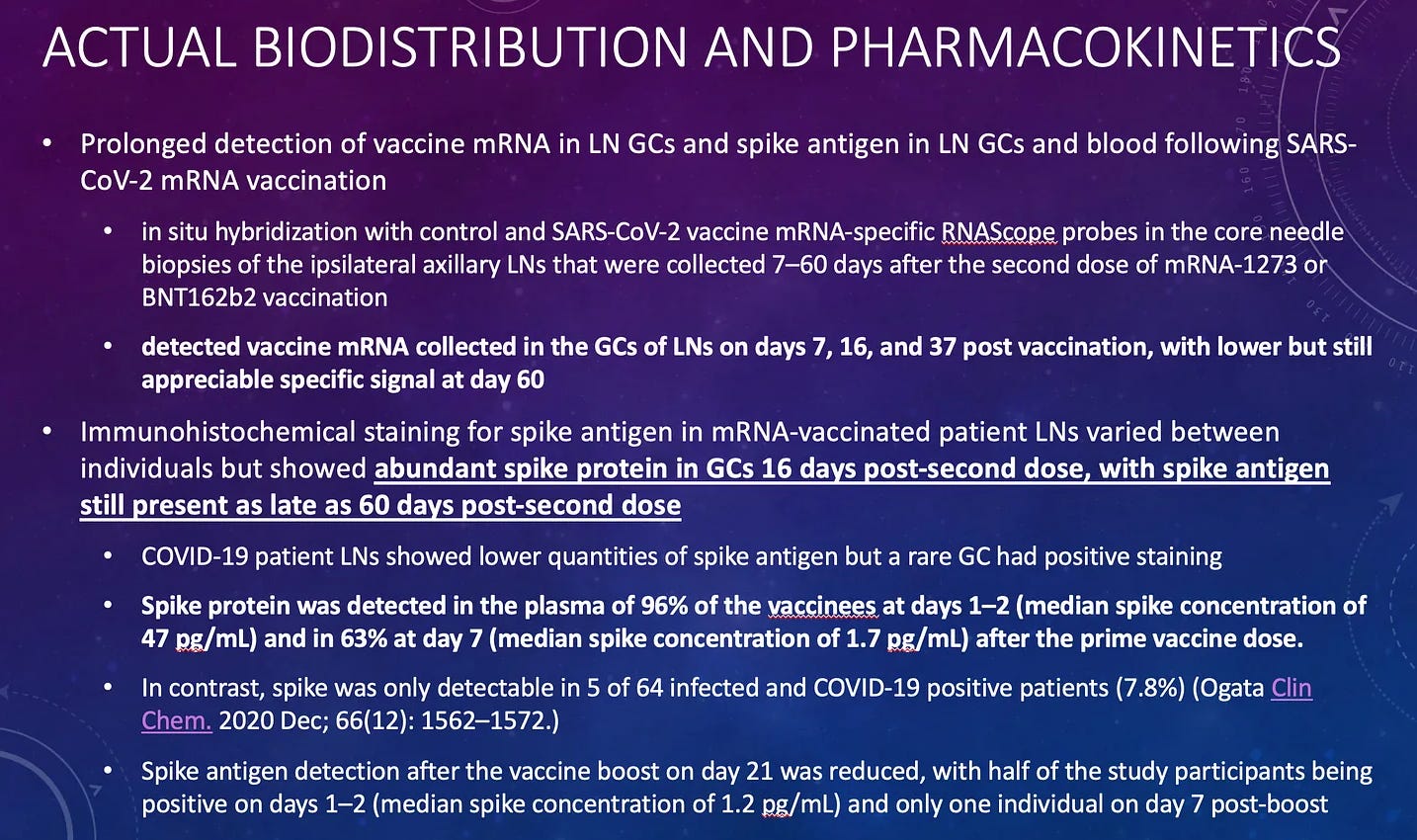 We know that the “mRNA” in these vaccines which incorporates the synthetic nucleotide pseudouridine can persist in lymph nodes for at least 60 days after injection.